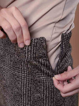 Il piccolo spacco sul retro aggiunge un tocco femminile e pratico, mentre il tessuto confortevole con disegno Principe di Galles regala eleganza senza rinunciare al movimento.
