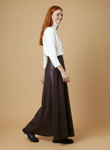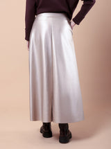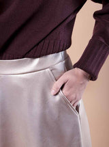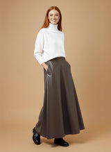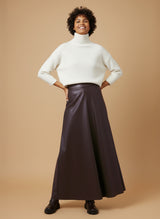 Elegante ma facile da indossare, la Gonna Penelope è realizzata in morbida simil pelle, con una linea lunga e leggermente svasata che valorizza la figura senza costringere. Le tasche frontali aggiungono un tocco pratico e moderno, mentre il cinturino piatto in vita assicura una vestibilità pulita ed essenziale.