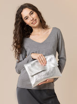 POCHETTE IN PELLE LAMINATA IN 2 COLORI