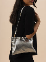 Pochette in pelle laminata, l’accessorio perfetto per tutte le tue serate. Capiente ma dalle dimensioni compatte, è ideale per contenere l’essenziale senza essere ingombrante. Può essere portata a mano per un look elegante o a tracolla per una maggiore comodità. La chiusura a clutch completa il design raffinato, rendendola un must-have per ogni occasione speciale