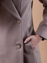 La lunghezza sotto al ginocchio, la chiusura doppiopetto con 4 bottoni e la fodera tono su tono completano il design, rendendolo perfetto per affrontare la stagione fredda con stile e raffinatezza.
