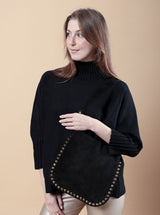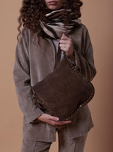 La borsa MATY unisce stile e funzionalità in un design elegante ma deciso. Realizzata in pelle scamosciata, si distingue per il suo dettaglio di borchie lungo il perimetro, che dona un tocco grintoso e contemporaneo.