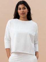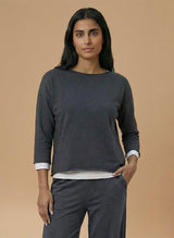 La felpa GRETA è la maglia con l’aspetto sportivo che non può mancare nel tuo guardaroba! Ha un volume a scatoletta che la rende comoda e stilosa, con uno scollo a barchetta e maniche 3/4. Le finiture a taglio vivo aggiungono quel tocco speciale che la distingue. Facile da indossare, ma con carattere, è l’abbinamento perfetto con il pantalone NICO per un look "TUTA NON TUTA" super comfy e alla moda!