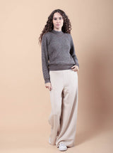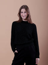 Maglia in lurex dalla vestibilità morbida e lunghezza in vita, realizzata con elegante lavorazione a maglia inglese. Perfetta per le serate, ma splendida anche con i jeans per un look quotidiano chic.