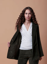 La giacca ROXANA è il capo ideale per chi cerca la struttura di una giacca con la comodità di un cardigan. Realizzata in un tessuto super morbido (effetto velluto liscio), è estremamente piacevole da indossare e si adatta perfettamente a ogni momento della giornata.