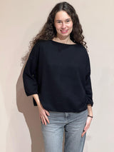 La sua particolarità sono lo scollo a barchetta e le maniche 3/4, bordate in viscosa in tono.