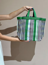BORSA RIGATA CON BORDATURA IN TESSUTO VERDE