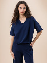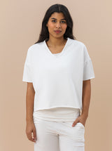 La felpa ADELE è la maglia con l’aspetto sportivo che non può mancare nel tuo guardaroba! Ha un volume a scatoletta che la rende comoda e stilosa, con uno scollo a V e maniche al gomito. Le finiture a taglio vivo aggiungono quel tocco speciale che la distingue. Facile da indossare, ma con carattere, è l’abbinamento perfetto con il pantalone NICO per un look tuta super comfy e alla moda!