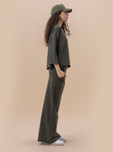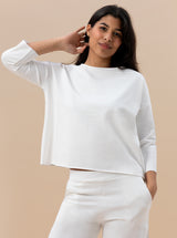 La felpa GRETA è la maglia con l’aspetto sportivo che non può mancare nel tuo guardaroba! Ha un volume a scatoletta che la rende comoda e stilosa, con uno scollo a barchetta e maniche 3/4. Le finiture a taglio vivo aggiungono quel tocco speciale che la distingue. Facile da indossare, ma con carattere, è l’abbinamento perfetto con il pantalone NICO per un look tuta super comfy e alla moda!