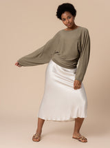 Rivoluziona il tuo guardaroba primaverile con la nostra maglia dalle maniche a pipistrello, un connubio perfetto di comfort e stile. Realizzata con un lussuoso filato misto di viscosa e lino, questa maglia offre una sensazione di morbidezza e leggerezza che ti accompagnerà tutto il giorno. Le maniche a pipistrello conferiscono un tocco di originalità e dinamismo al tuo look, mentre il girocollo e la linea che si stringe sui fianchi aggiungono un tocco di femminilità e grazia. Con la sua versatilità, questa maglia si presta perfettamente a essere indossata sia di giorno che di sera, garantendo un look impeccabile in ogni occasione. Nasce in 2 taglie Small e Medium, perchè ha una vestibilità ampia.