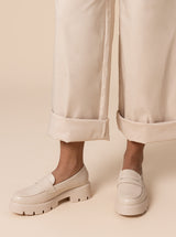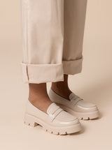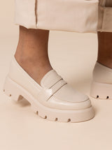 Nuovo must-have dello stile urbano contemporaneo, questo mocassino è caratterizzato da una suola carrararmato in eco pelle beige, presenta una suola in gomma leggera abbinata a una silhouette elegante. Abbinalo a pantaloni e gonne aggiungendo un elemento sofisticato al look di tutti i giorni.