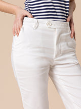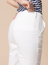 Super confort per i nostri pantaloni a zampetta realizzati in tessuto di cotone elasticizzato. Hanno una vestibilità impeccabile. Sono pensati e prodotti per abbracciare ogni curva offrendo un comfort ineguagliabile tutto il giorno. Con tasche pratiche davanti e dettagli sottili di tasca a filetto finta sul retro. I passanti in vita aggiungono un tocco di praticità, consentendoti di personalizzare il tuo look con o senza cintura. Disponibili in una vasta gamma di taglie, sono adatti a chiunque e perfetti per la stagione primavera estate.