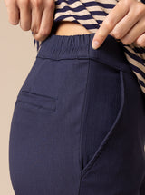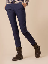 Il pantalone SUSY STRETTO è un modello a sigaretta, caratterizzato da una linea affusolata e aderente lungo tutta la gamba. La presenza dell'elastico nella parte posteriore della vita offre maggiore comfort e adattabilità alla silhouette, mentre il tessuto in cotone elasticizzato con trama fiammata conferisce un aspetto moderno e una vestibilità estremamente comoda.