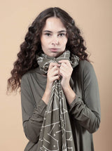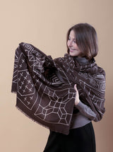 Questa grande stola in tessuto morbido offre un comfort ineguagliabile, avvolgendoti in una sensazione di morbidezza estrema. Elegante e versatile, puoi indossarla sia come stola che a scialle. La fantasia la  rende perfetta per completare con classe ogni look, sia casual che più formale.
