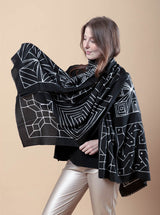 Questa grande stola in tessuto morbido offre un comfort ineguagliabile, avvolgendoti in una sensazione di morbidezza estrema. Elegante e versatile, puoi indossarla sia come stola che a scialle. La fantasia la rende perfetta per completare con classe ogni look, sia casual che più formale.