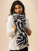 Questa grande stola in tessuto morbido offre un comfort ineguagliabile, avvolgendoti in una sensazione di morbidezza estrema. Elegante e versatile, puoi indossarla sia come stola che a scialle. La fantasia è meravigliosa, stampa effetto zebra con piccoli dettagli oro, donano un raffinato gioco di sfumature, rendendola perfetta per completare con classe ogni look, sia casual che più formale.