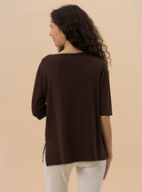 Scopri il nuovo capo Basic della collezione Spazio Quaranta: la T-shirt Dany. Realizzata in morbido jersey di viscosa, questa maglia offre una vestibilità ampia e confortevole, perfetta per ogni occasione. Il suo scollo a V aggiunge un tocco di eleganza discreta, mentre i due spacchetti laterali donano movimento e un tocco di originalità. Le maniche “magiche”, che arrivano appena sopra il gomito, completano il design con un effetto leggero e sofisticato. Una T-shirt versatile, ideale per un look casual ma ricercato.