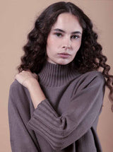Dettagli curati come il collo a cratere e la manica 3/4, entrambi rifiniti con dettaglio a costa, aggiungono un tocco raffinato e contemporaneo.