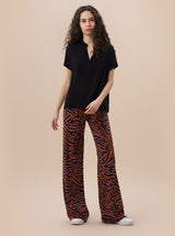 Comodo, leggero e pieno di stile: il pantalone ARIANNA è il capo perfetto per affrontare l’estate con grinta e versatilità. Realizzato in morbido jersey di viscosa con fantasia vivace, ha un elastico in vita e una gamba ampia che dona comfort e libertà di movimento.